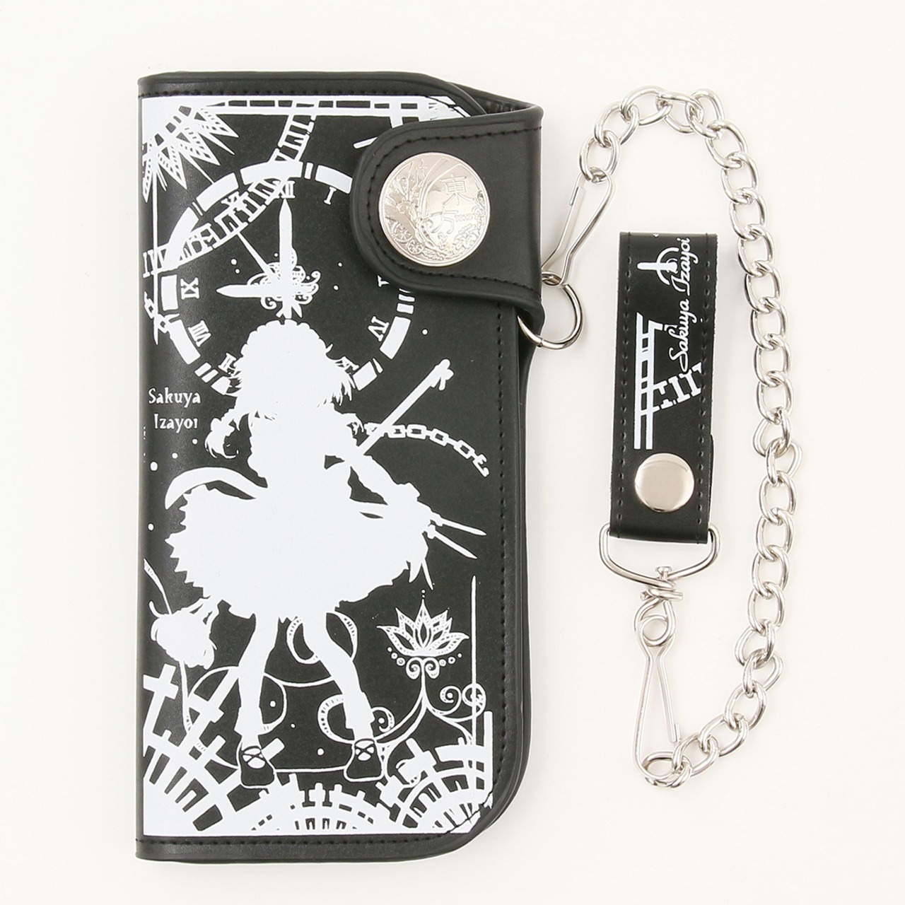 十六夜咲夜の長財布です。素 材:PVC 寸 法:縦19cm 横9cm ストラップ寸法:チェーン長33cm、ベルトループ長7cm ★営利目的での転売行為は禁止です。